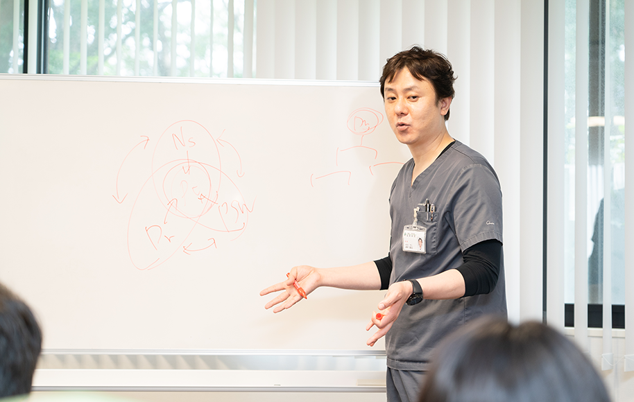 どうして福間病院を選びましたか?私は臨床をメインとした研修先を探していました。その中で福間病院を見学した際に、臨床を全面に押し出した現場主義の研修体制と自然に溢れた穏やかな院内環境を目の当たりにし、“ここなら自分の希望に沿っている”と思い、福間病院に決めました。